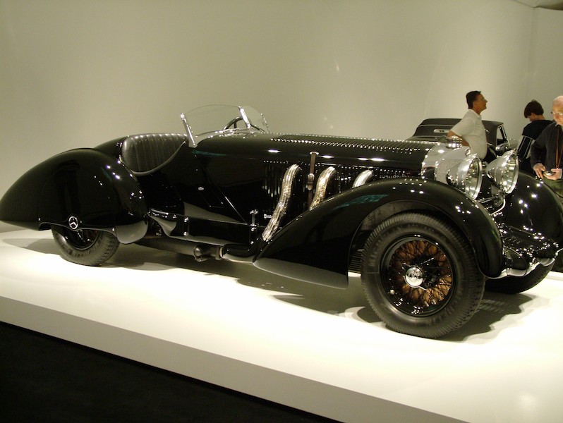 1930 Mercedes-Benz SSK “Count Trossi” roadster, a 1931 Alfa Romeo Monza, a 1934 Bugatti Type 59, a 1938 Alfa Romeo 2.9 Mille Miglia Spyder, and a 1938 Bugatti Type 57SC Atlantic
